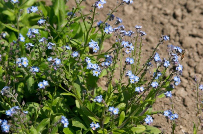Myosotis, the forget-me-nots, is a genus of herbaceous plants found in cooler regions of the world with mostly blue (occasionally white or yellow) flowers.